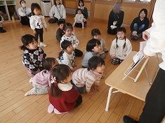 大型絵本の『だるまさんが』を興味津々で