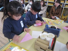 ちょっぴりドキドキしながら折っていた子どもたち…♡