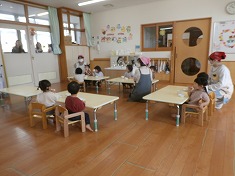 朝の集まりをして、大きな声で返事をしたり、歌を