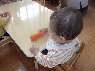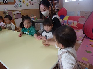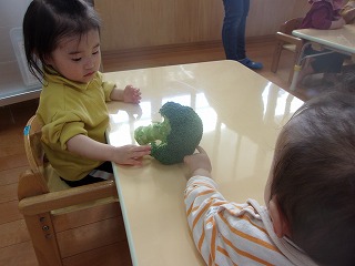みんなでお野菜に触れてみました♪どんな感触かな?