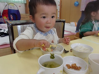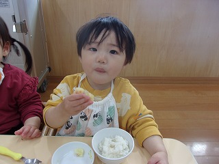 お給食と一緒に食べました!自分で作ったポテトサラダはおいしかったね♡