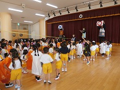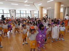 それぞれの学年がおばけやかぼちゃの仮装をして遊戯室に集まりました🎵