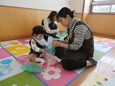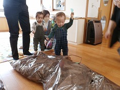 花紙を丸め、鈴を入れてタンバリン作りました😊