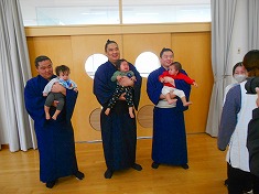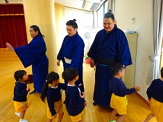 その後は、お相撲さんと力比べ✨みんなで力を合わせてお相撲さんに勝ち、大喜び☺