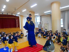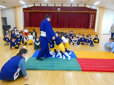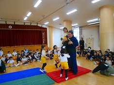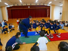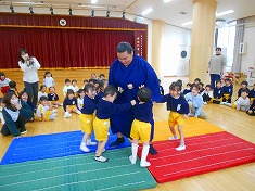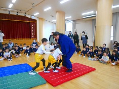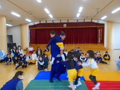 最後はタッチをしてもらいました!! 大きな手に子ども達はビックリ!!