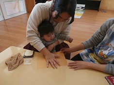 子どもたちは、ドキドキしながら手形をしま